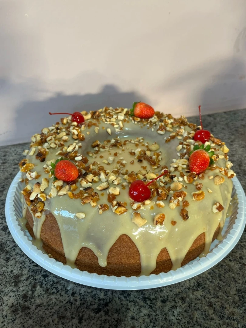 MASSA AMANTEIGADA E COBERTURA DE LEITE CONDENSADO COM CASTANHA DE CAJU CARAMELADA(IMAGEM ILUSTRATIVA, PODE VARIAR DE ACORDO COM DISPONIBILIDADE D EMORANGOS)
