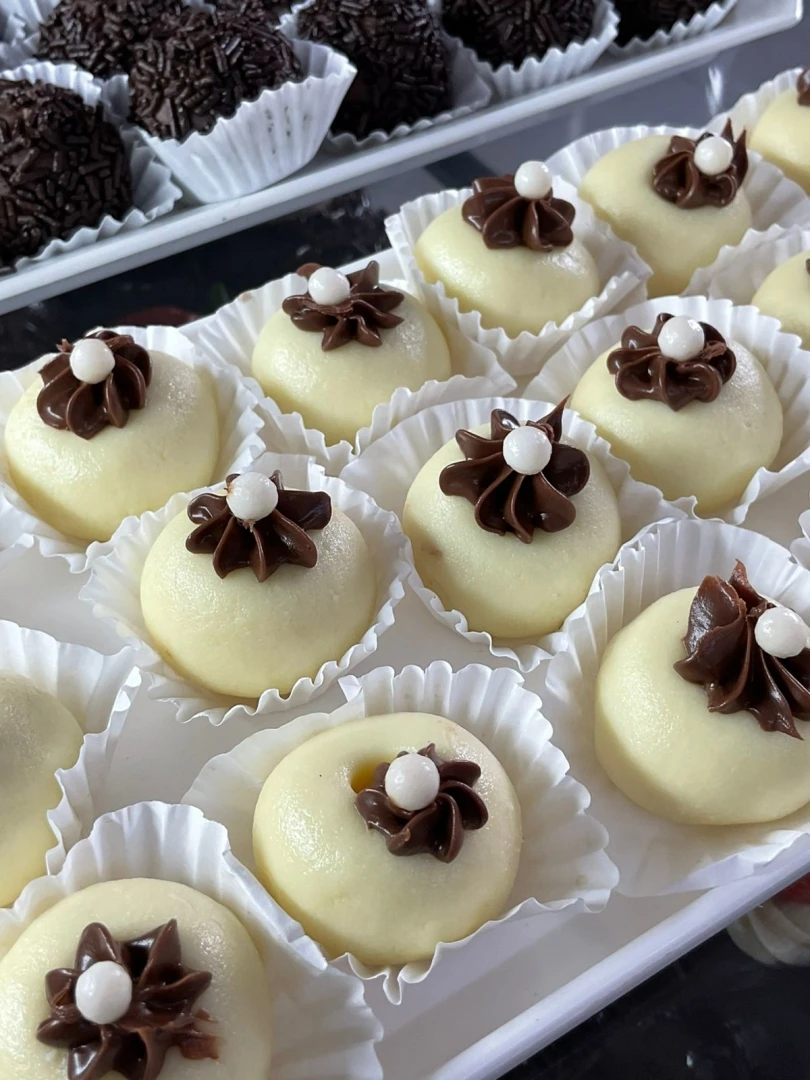 Docinho com cobertura de chocolate e recheio de castanha caramelada e leite condensado (Unidade)
