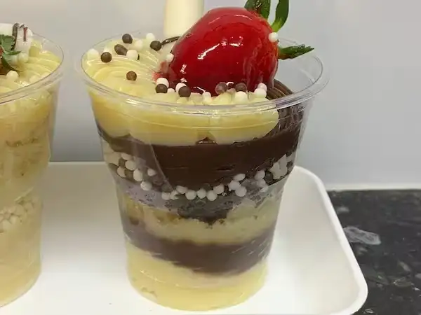 Massa de chocolate, brigadeiro cremoso, finalizado com creme de chantilly cremoso