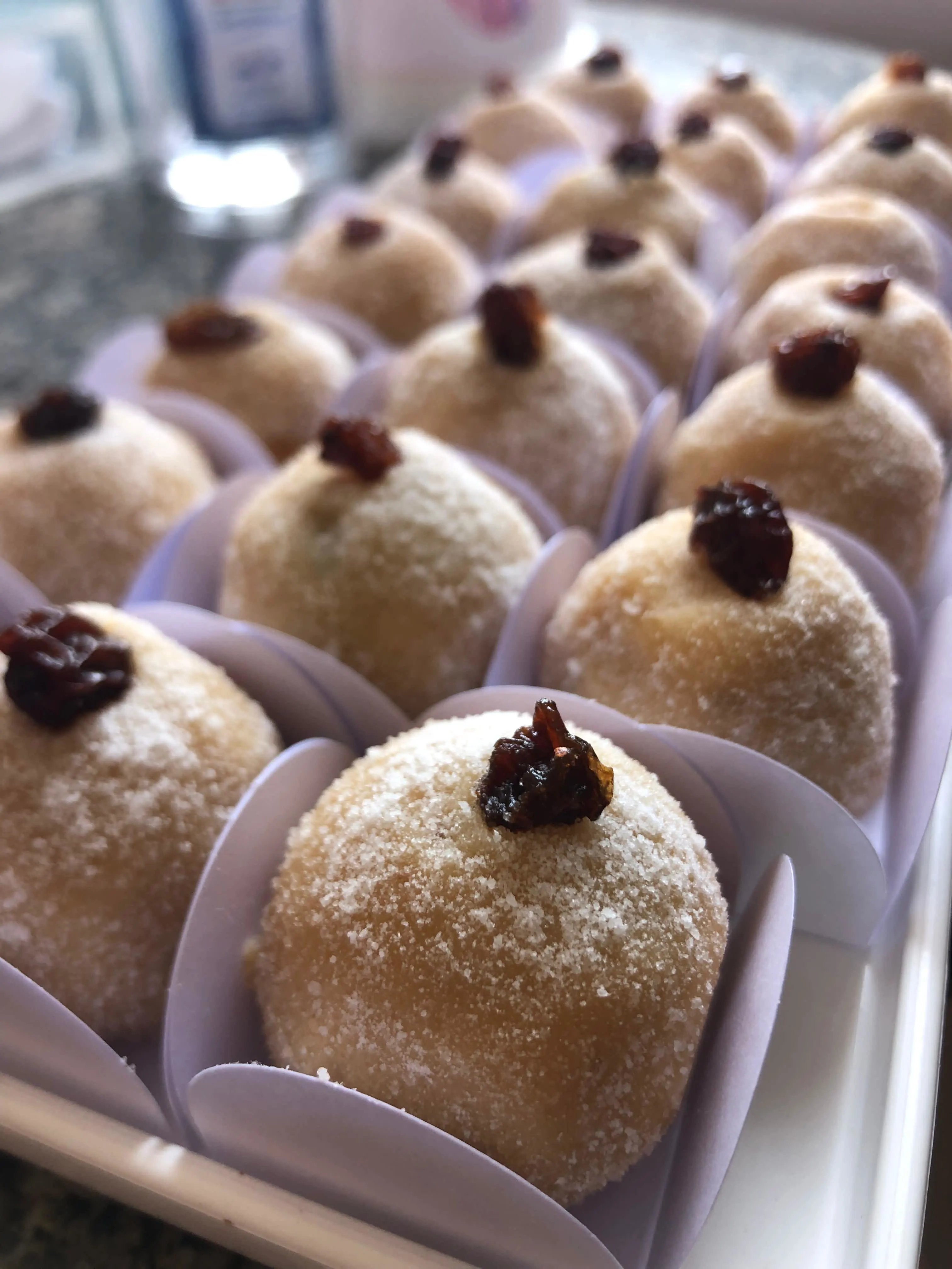 UVA VERDE ENROLADA NO LEITE CONDENSADO E DECORADO COM UVA PASSAS